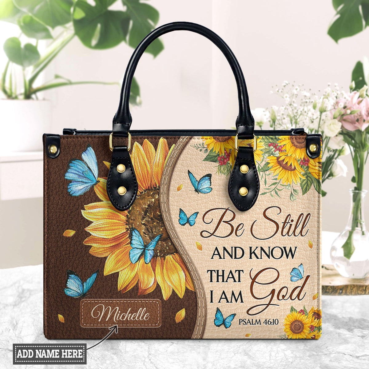 Be Still And Know That I Am God Psalm 46 10 Sunflower Butterfly Leather Bag