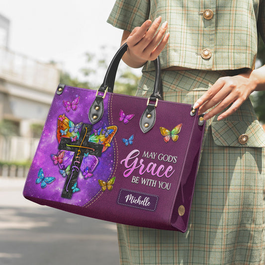 May Gods Grace Be With You Butterfly Galaxy Leather Bag