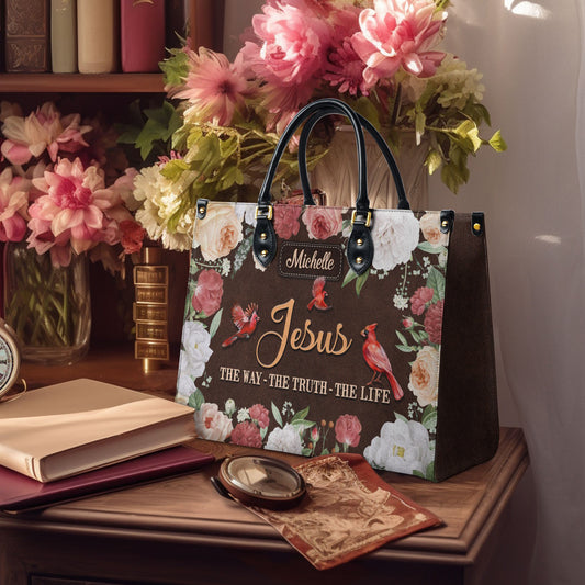 Jesus The Way The Truth The Life Cardinal Vintage Flower Leather Bag