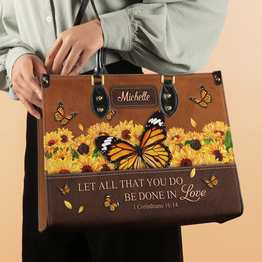 Let All That You Do Be Done In Love 1 Corinthians 16 14 Butterfly Sunflower Leather Bag