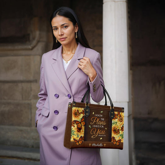 I Know The Plans I Have For You Jeremiah 29 11 Sunflower Butterfly Leather Bag