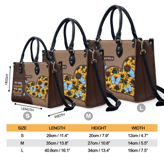Faith Sunflower Butterfly Custom Quote Leather Bag