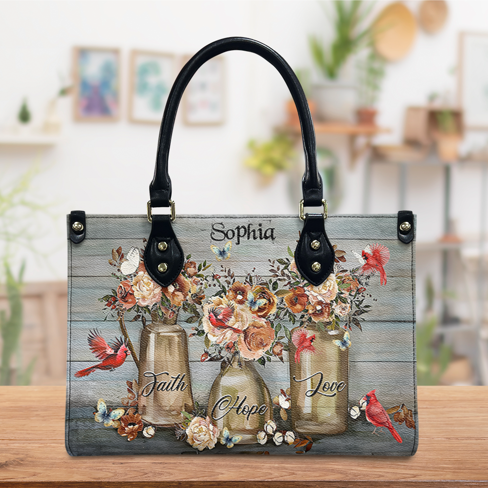Faith Butterfly Leather Carving Custom Quote Leather Bag