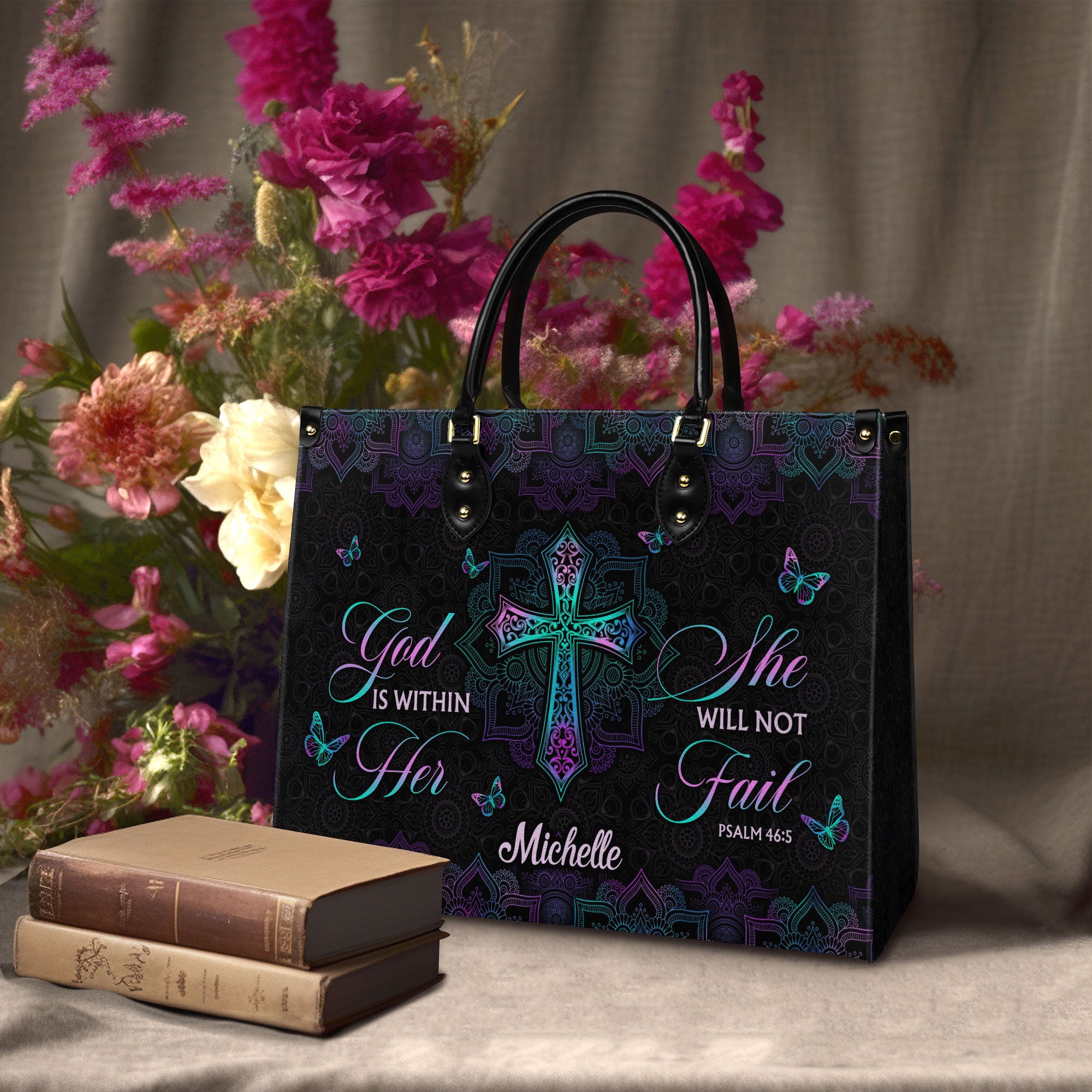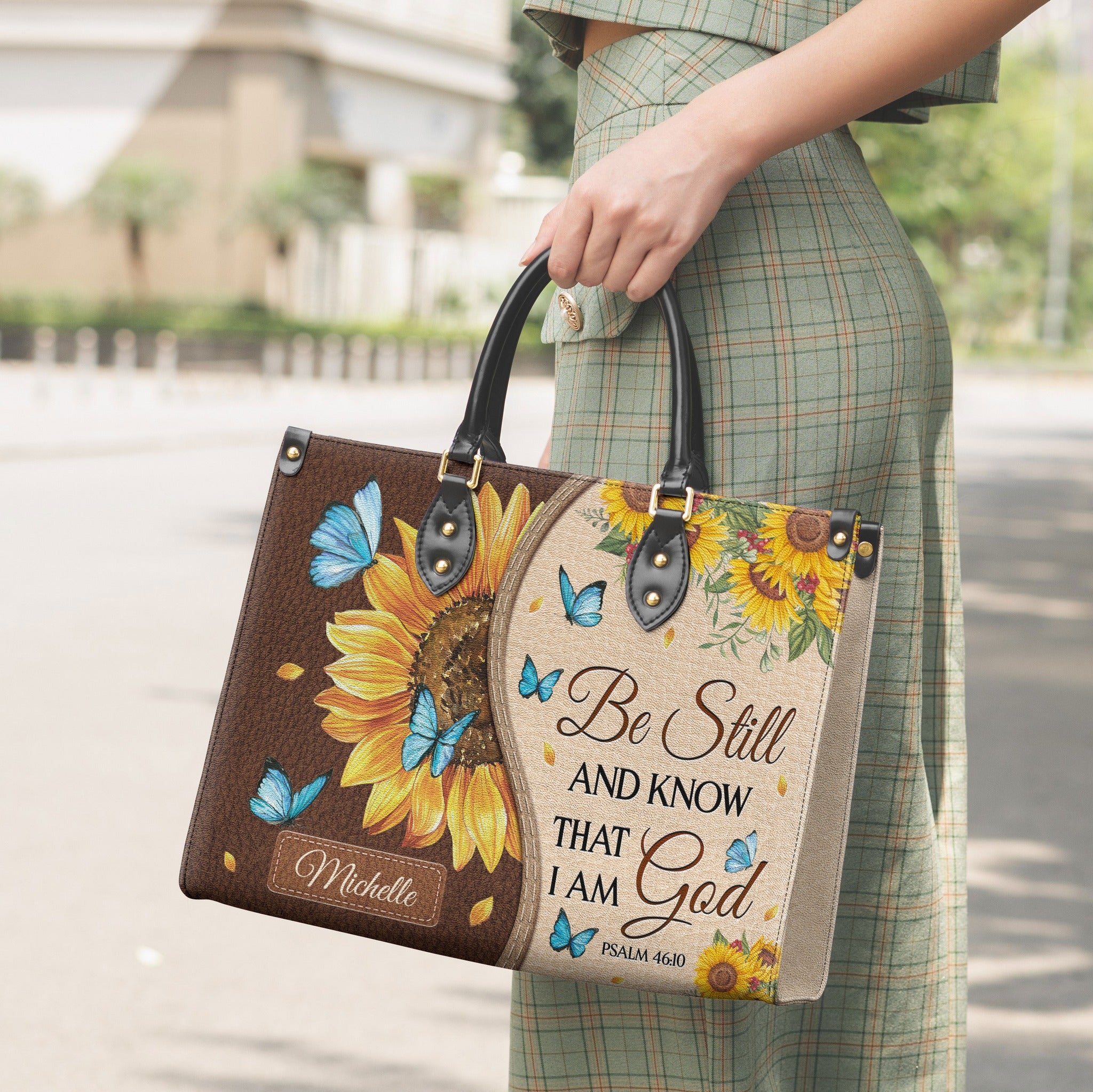 Be Still And Know That I Am God Psalm 46 10 Sunflower Butterfly Leather Bag