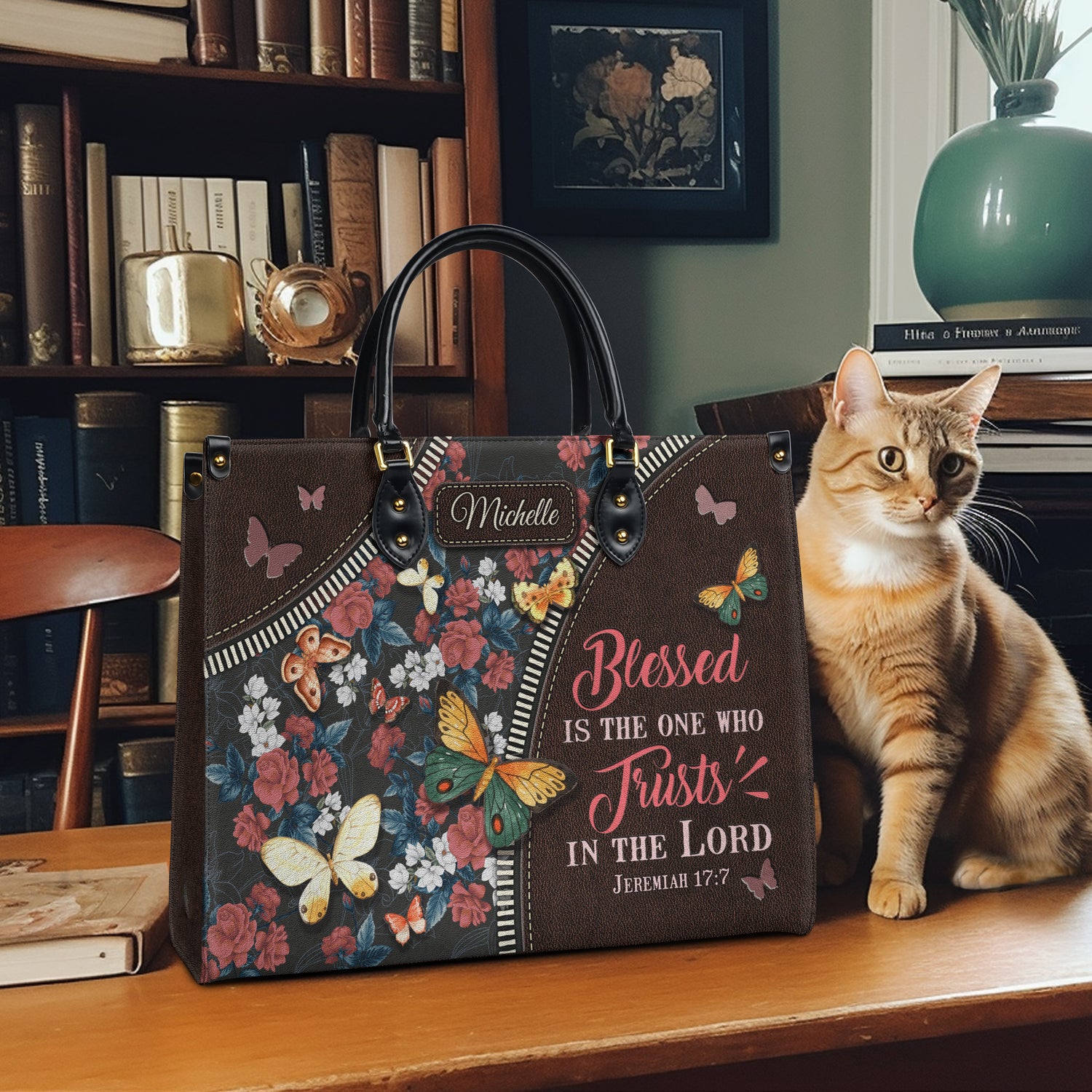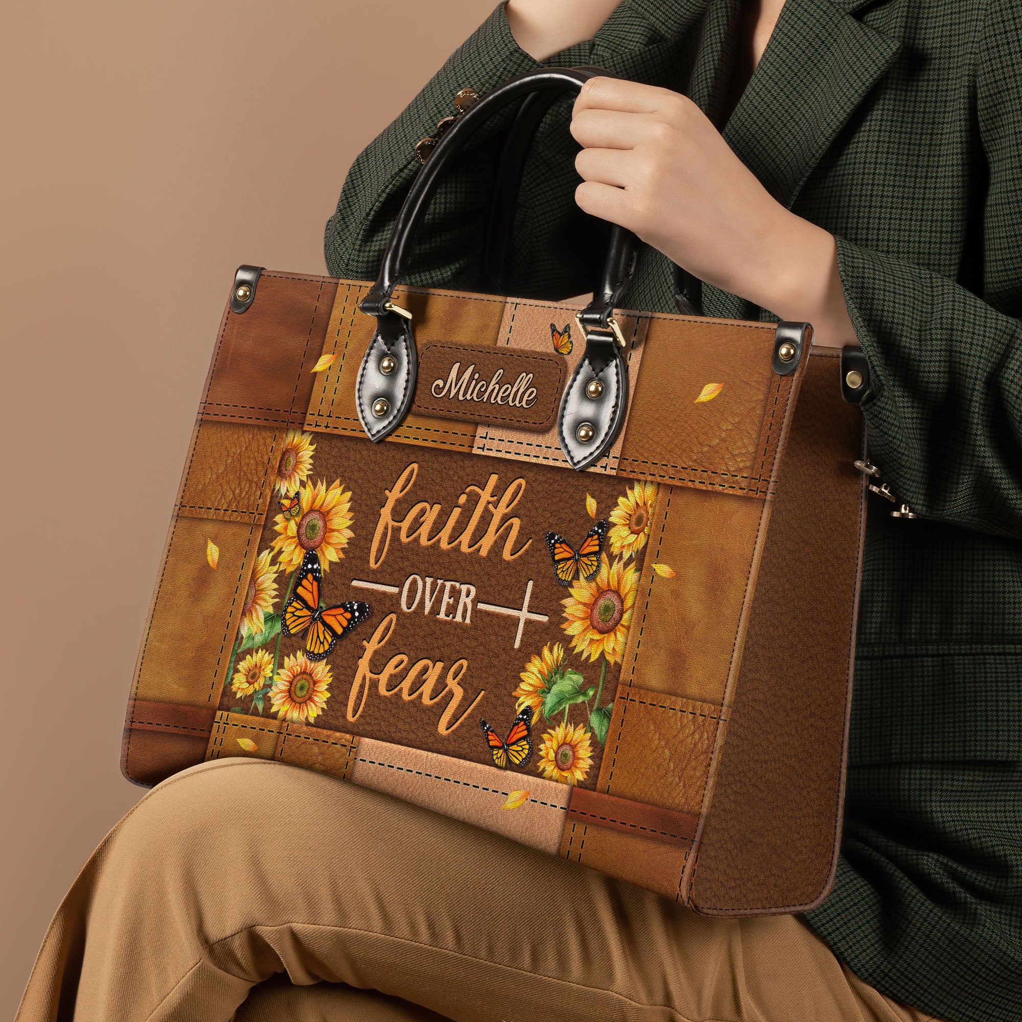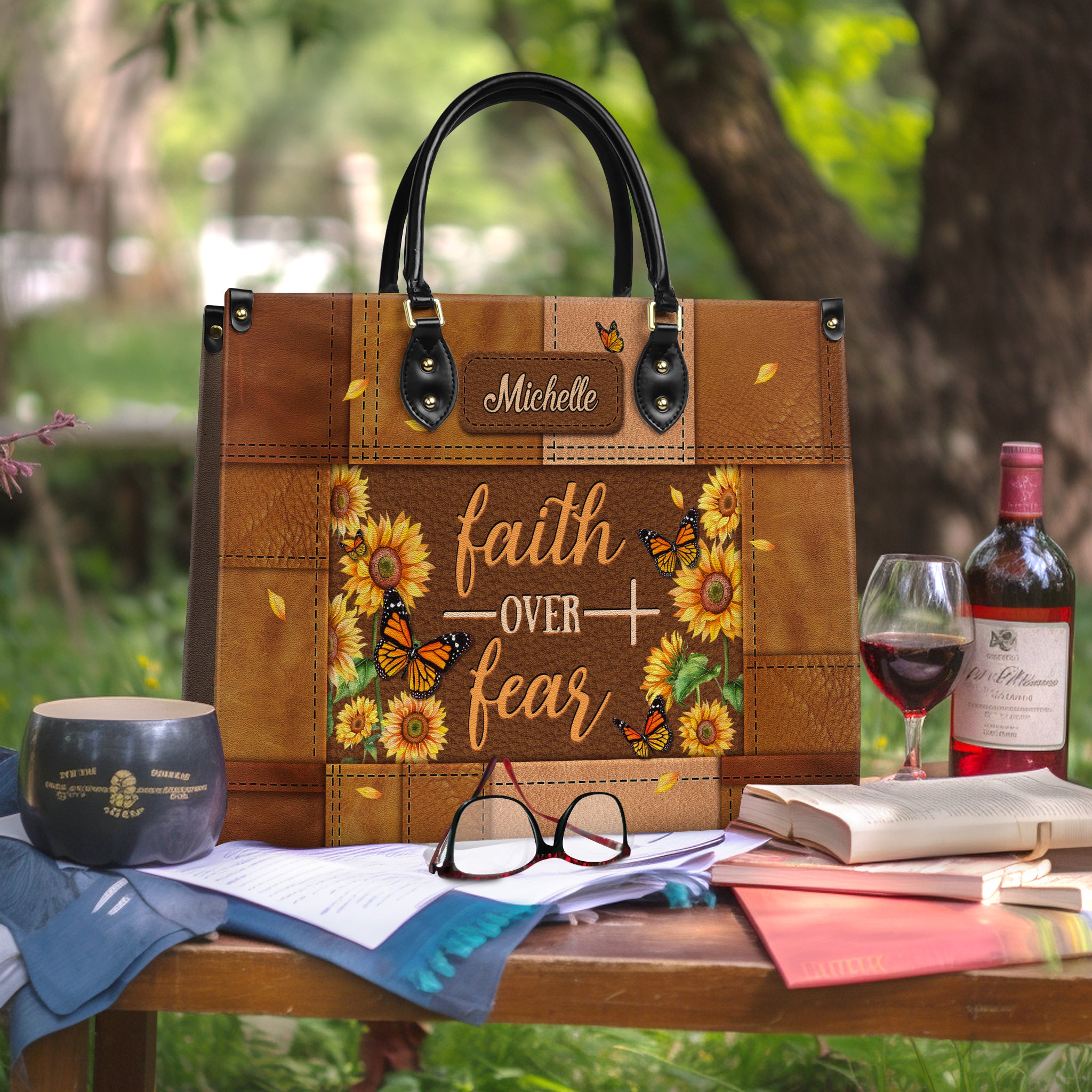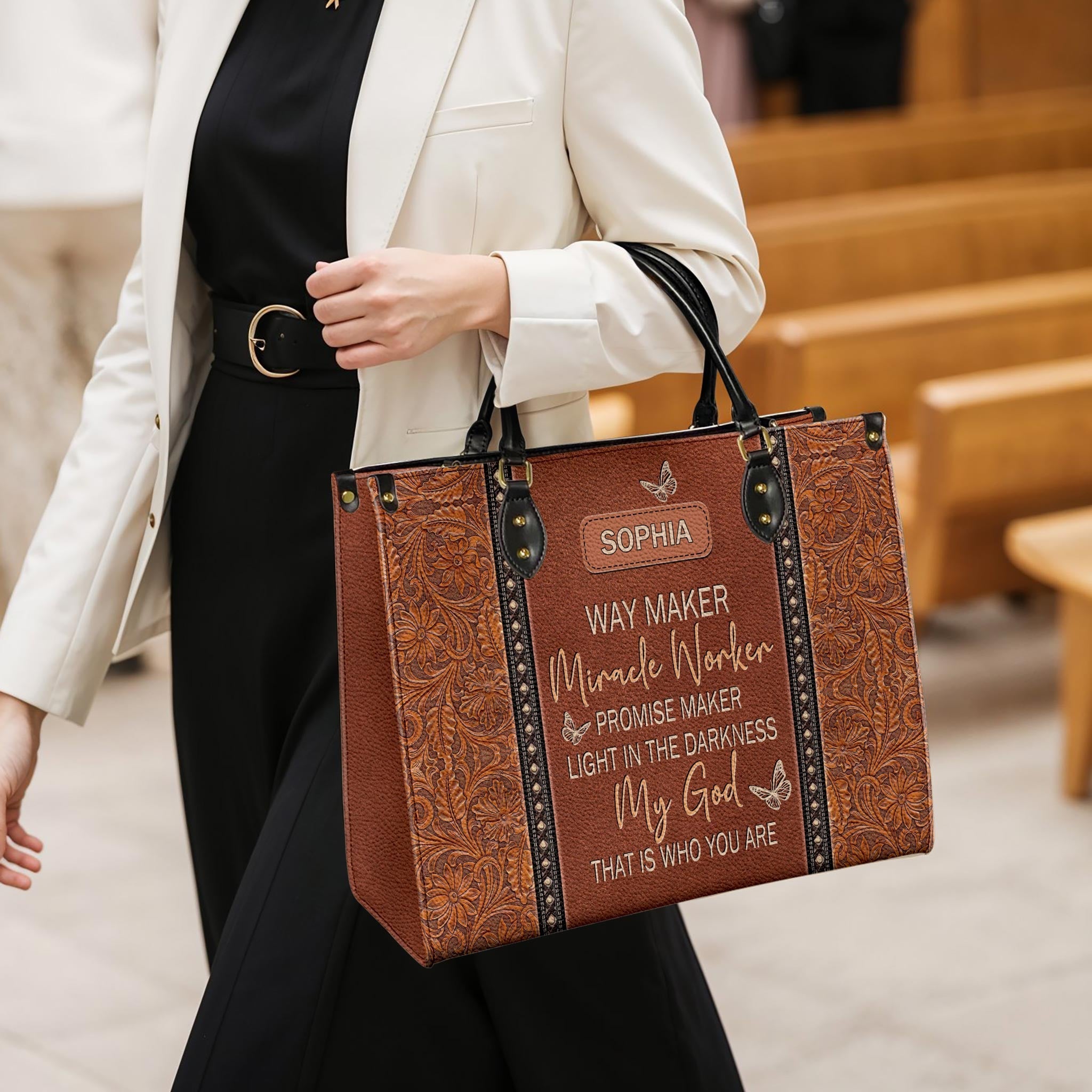 Faith Butterfly Leather Carving Custom Quote Leather Bag