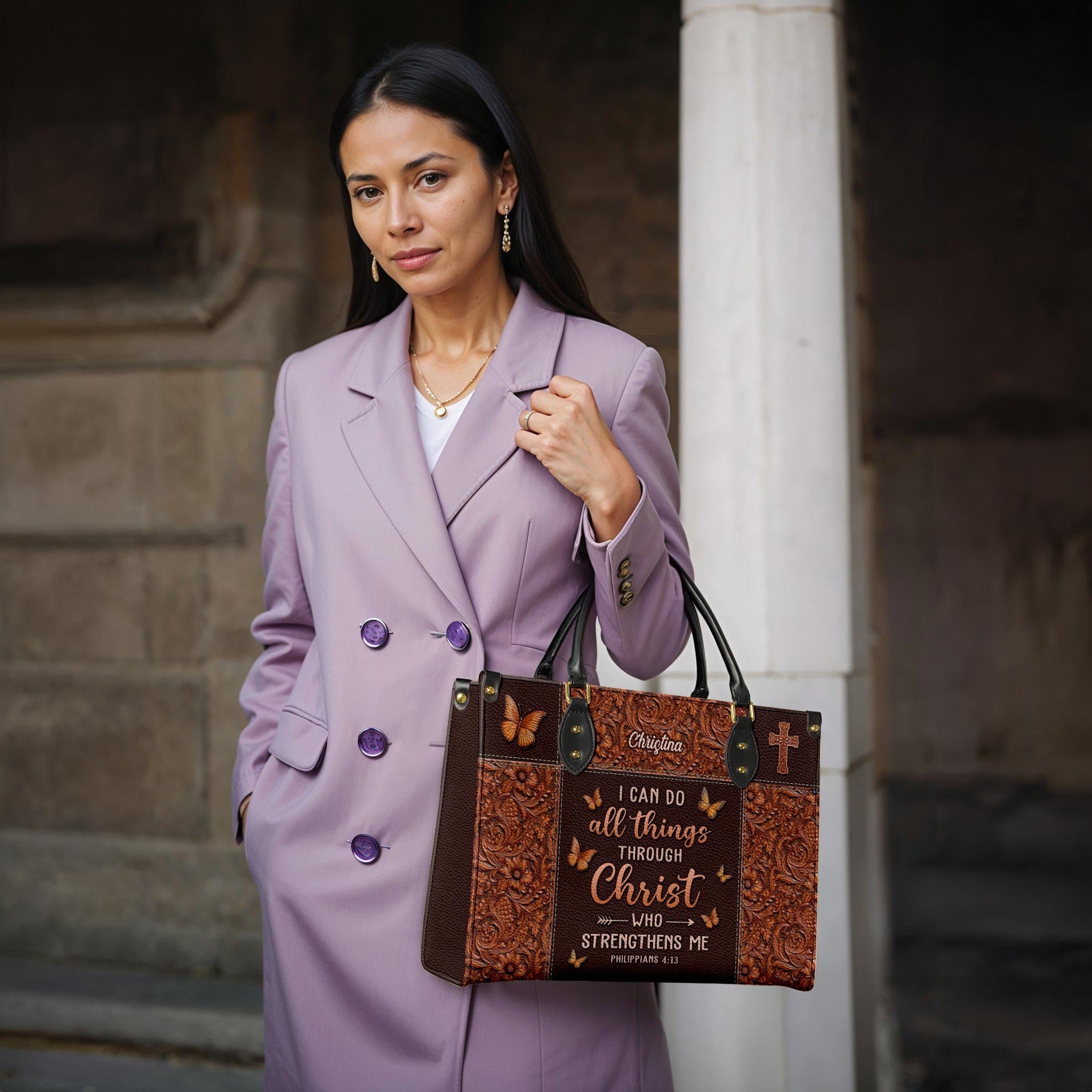 I Can Do All Things Through Christ Philippians 4 13 Butterfly Leather Bag
