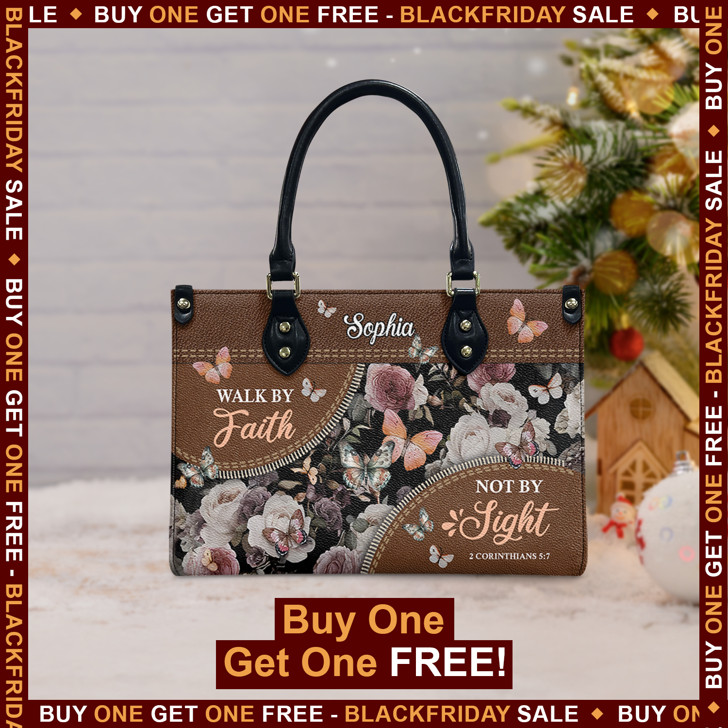 Walk By Faith Not By Sight 2 Corinthians 5 7 Butterfly Flower Leather Bag